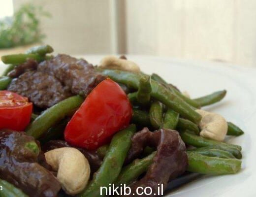 נתחי בקר מוקפצים עם שעועית ירוקה