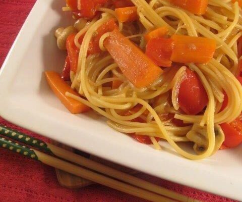 מוקפץ זאת אחלה דרך לארגן ארוחת צהריים טובה למי שעסוק ואין לו זמן להתעסק עם המטבח. יש במתכון הכל, ירקות וספגטי, מנה צמחונית שמוכנה תוך כמה דקות, משביעה טעימה ואלו מצרכים שיש בכל בית. עומד להיות טעים היום.